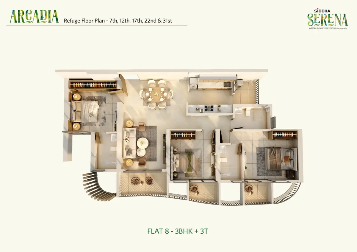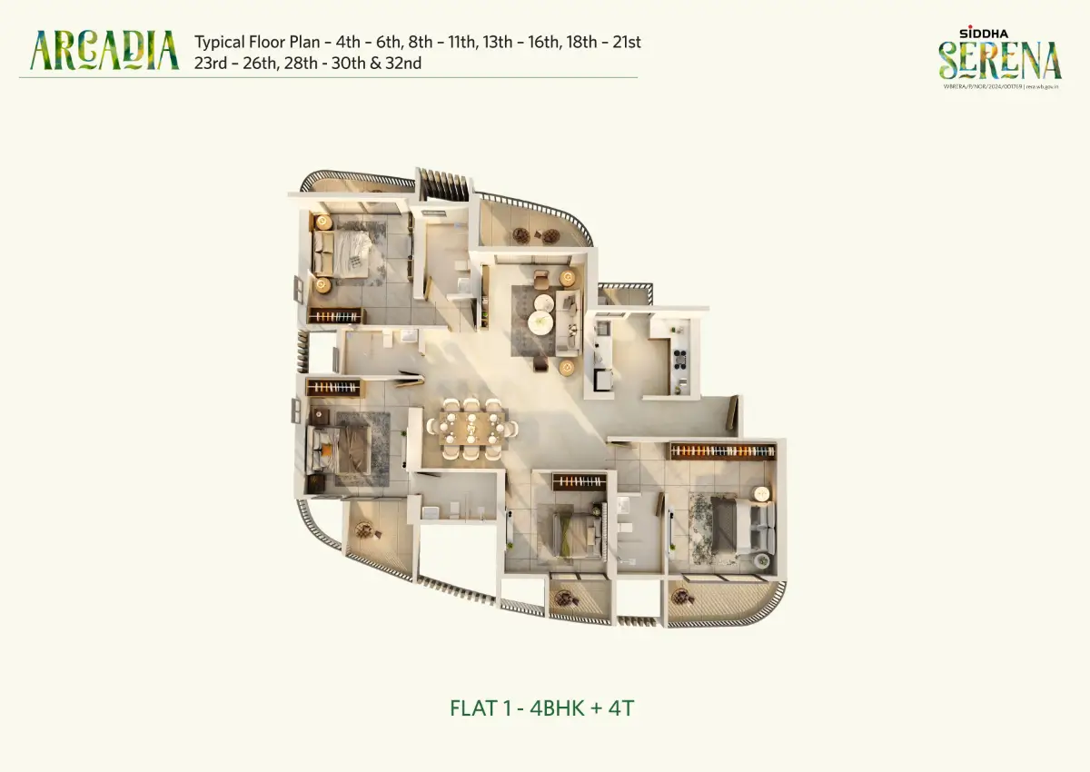 At Siddha Serena, Newtown, the thriving natural ecosystem offers daily companionship with flora and fauna. Find breathtaking views of the 67% open area from your balcony or from the rooftop of the G+32 towers. When you’re exploring premium options and searching for elevated homes such as Siddha Serena, this development stands out for its harmony of serenity and contemporary design.